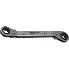 For use where access is limited. With a built-in ratchet mechanism to provide speed and a reversible action which can be achieved by depressing the reversing lever or by simply turning the wrench over. All ratcheting ring wrenches are manufactured from chrome vanadium steel with bi-hex rings*.