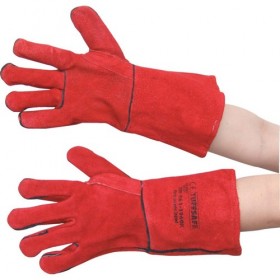 LINED SPLIT LEATHER GAUNTLETSWITH REINFORCED THUMB RED SZ-10