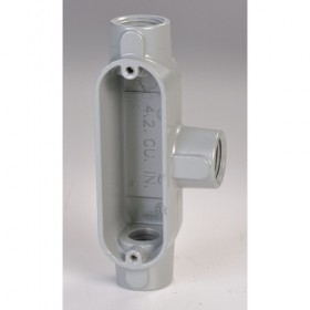 Conduit Outlet Body Hazardous Location No Conduit Outlet Body Material Copper Free Aluminum Conduit Outlet Body Style T Conduit Outlet Body Hub Size 1/2 In. Conduit Outlet Body Hub Style Not Threaded Conduit Outlet Body Capacity 3.0 cu in. Back Type Flat Gray Special Features Triple Coat Epoxy Coating Standards UL 514A UL 514B C22.2 No 18.3 Form 85