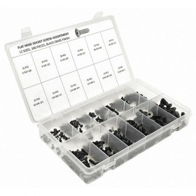 Cap Screw Assortment Head Type Flat Steel Finish Black Oxide Size #6-32 to 5/16-18 Length 3/8 in to 1 In. Drive Type Hex Number of Pieces 300 Number of Sizes 12 Includes (25) Each 6-32x3/8 In. 6-32x1/2 In. 8-32x3/8 In. 8-32x1/2 In. 10-24x3/8 In. 10-24x1/2 In. 10-24x3/4 In. 1/4-20x1/2 In. 1/4-20x3/4 In. 1/4-20x1 In. 5/16-18x3/4 In. 5/16-18x1 In. Plastic Case