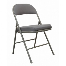 Padded Folding Chair Overall Height 32-1/4 In. Overall Width 18-1/2 In. Overall Depth 20-1/2 In. Seat Color Gray Back Color Gray Frame Color Beige Seat Material Fabric Back Material Fabric Frame Material Steel Arm Style No Arm Weight Capacity 300 lb.