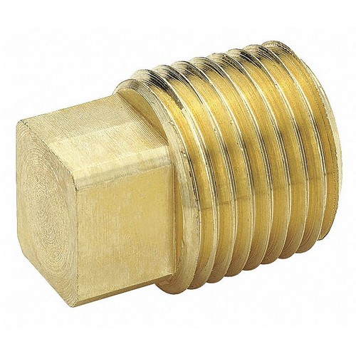 Square Head Plug 1/2 in Nominal Pipe Size Brass C36000 Male NPT 1 1/16 in Overall Length 1 000 psi Maximum Operating Pressure 1 000 psi Max Steam Pressure -65 Degrees to 250 Degrees F Plug Construction Cored Plug Drive Style Hex Includes Pre-Applied Thread Sealant Yes Thread Sealant Type Vibra-Seal(R) Includes Seal No Magnetic No