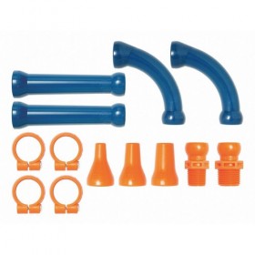 Extended Kit Hose Inside Dia (In.) 1/2 Acetal Copolymer For Use With 1/2 in Flex Hose Systems Acetone Alcohol Ethyl Commercial Dish Detergents Gasoline Grease Lacquer Solvents Oils and Sodium Hydroxide Includes (2) 1/2 in Extended Elbows and Extended Elements (4) Clamps 3/8 in 1/2 in NPTS 1/4 In. 3/8 In. 1/2 in Round Nozzles Max Pressure (PSI) 20-30