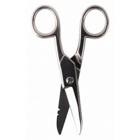 Primary Application Electrical and Communications Electricians Scissors Ambidextrous Handle Style Straight Overall Length 5-1/4 In. Length of Cut 1-3/4 In. Blade Material High Carbon Steel Tip Shape Sharp Cutting Edge Fine and Serrated Adjustable No Handle Design Ring and Ring Handle Material Polished Steel Handle Color Silver Features Wire Strip Notches for 18-20 and 22-24 AWG Wire Scraper and File on Back of Blade