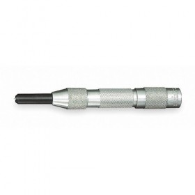 Automatic Center Punch Length 5 In. Diameter 5/8 In. Number of Pieces 1 Aluminum Handle High Carbon Steel Point Knurled Adjustable Yes Replaceable Point Yes Point 0.015 In. Blow Force 1.5 - 5.5 Lb Single Hand Operation for Hinge Locating Includes -