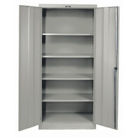 H2196 Storage Cabinet Shelving Commercial Cabinet Height Range Full Height Cabinet Door Type Standard Assembled Height of Cabinet 72 In. Width of Cabinet 48 In. Depth of Cabinet 18 In. Material - Cabinets Steel Number of Cabinet Shelves 4 Shelf Capacity 200 lb. Number of Doors 2 Cabinet Color Dark Gray Mobile/Stationary Stationary 22 Gauge Locking Cabinet Yes 3 Points Locking Points Cabinet Locking Mechanism Keyed Cabinet Handle Style Swing No of Drawers 0