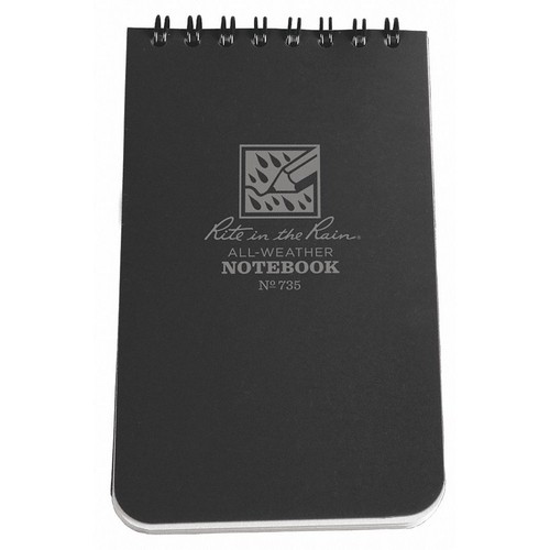 All Weather Notebook Cover Color Black Cover Material Polydura Binding Wirebound Sheet Size 3 in x 5 In. Rule Universal Paper Color Gray Paper Weight 20 lb.