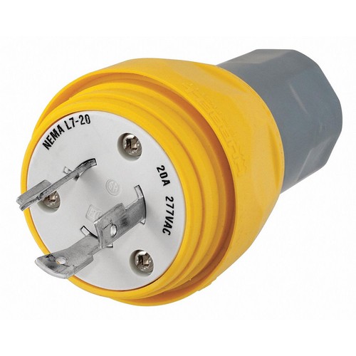 Watertight Locking Plug Wiring Style Standard Shrouded / Non-Shrouded Non-Shrouded Grade - Plugs and Receptacles Industrial 277VAC Number of Poles 2 Number of Wires 3 L7-20P Yellow Amps - Plugs and Receptacles 20 Corrosion Resistant No Antimicrobial No Cord Size 0.325 in to 0.875 In. IP Rating 69K 1 Phase HP 2.0 Material Thermoplastic Elastomer Valox Special Features Moisture Dust and Weather Resistant
