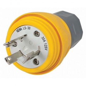 Watertight Locking Plug Wiring Style Standard Shrouded / Non-Shrouded Non-Shrouded Grade - Plugs and Receptacles Industrial 125VAC Number of Poles 2 Number of Wires 3 L5-30P Yellow Amps - Plugs and Receptacles 30 Corrosion Resistant No Antimicrobial No Cord Size 0.375 in to 1.125 In. IP Rating 69K 1 Phase HP 2.0 Material Thermoplastic Elastomer Valox Special Features Moisture Dust and Weather Resistant
