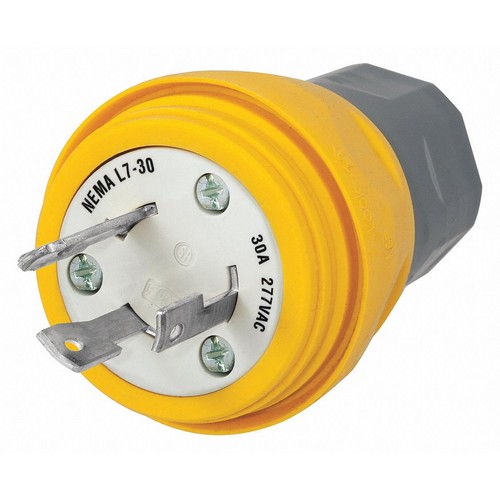 Watertight Locking Plug Wiring Style Standard Shrouded / Non-Shrouded Non-Shrouded Grade - Plugs and Receptacles Industrial 277VAC Number of Poles 2 Number of Wires 3 L7-30P Yellow Amps - Plugs and Receptacles 30 Corrosion Resistant No Antimicrobial No Cord Size 0.375 in to 1.125 In. IP Rating 69K 1 Phase HP 3.0 Material Thermoplastic Elastomer Valox Special Features Moisture Dust and Weather Resistant