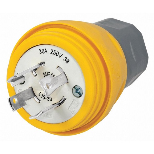 Watertight Locking Plug Wiring Style Standard Shrouded / Non-Shrouded Non-Shrouded Grade - Plugs and Receptacles Industrial 250VAC Number of Poles 3 Number of Wires 4 L15-30P Yellow Amps - Plugs and Receptacles 30 Corrosion Resistant No Antimicrobial No Cord Size 0.375 in to 1.125 In. IP Rating 69K 3 Phase HP 3.0 Material Thermoplastic Elastomer Valox Special Features Moisture Dust and Weather Resistant