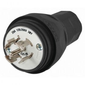 Watertight Locking Plug Wiring Style Standard Shrouded / Non-Shrouded Non-Shrouded Grade - Plugs and Receptacles Industrial 120/208VAC Number of Poles 4 Number of Wires 5 L21-20P Black Amps - Plugs and Receptacles 20 Corrosion Resistant No Antimicrobial No Cord Size 0.325 in to 0.875 In. IP Rating 69K 3 Phase HP 2.0 Material Thermoplastic Elastomer Valox Special Features Moisture Dust and Weather Resistant