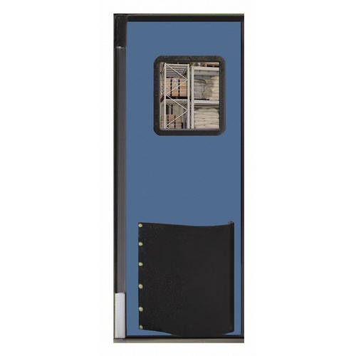H1816 Swinging Door Door Height 7 ft. Door Width 2 ft 6 In. Door Color Cadet Blue Swinging Door Material Polyethylene Textured (Polyethylene Eggshell) Finish Door Thickness 1-1/2 In. Number of Doors 1 Window Height 18 In. Window Width 12 In. Bumpers Included Yes Door Seals Included Yes Opening Height 7 ft. Opening Width 2 ft 6 In. Window Color Clear Window Material Polycarbonate Left and Right Jamb Insulation Value 9.86 Standards USDA