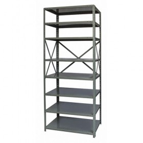 Metal Shelving Freestanding Open Industrial Shelving Gauge 18 Overall Width 36 In. Overall Depth 12 In. Overall Height 87 In. Shelving Frame Material Steel Shelving Material Steel No of Shelves 8 Shelf Capacity 1100 lb. Dark Gray Unassembled Shelving Post Gauge 14 1-1/2 In. Finish - Shelving and Racks Powder Coated Includes (8) Shelves (4) Posts (32) Clips Side Back Sway Brace Assembly and Hardware Shelf Style Solid Number of Drawers 0