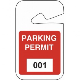 Parking Permits Rearview Mirror Tag Number Series 001-100 Material Plastic Color White on Red Length 4-3/4 In. Width 2-3/4 In. Legend Parking Permit Includes 100 Sequential Permits