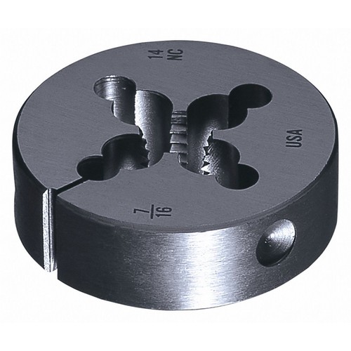Round Threading Die Round Thread Size #10-24 UNC Adjustable Outside Dia 13/16 In. Die Material High Speed Steel Thread Direction Right Hand Die Thickness 1/4 In. Finish - Machining Bright (Uncoated)