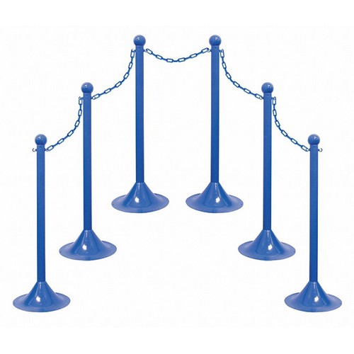 Light Duty Stanchion Kit Application Outdoor or Indoor Post Dia 2 In. Height 41 In. Color Blue Post Material UV Inhibited Polyethylene Base Dia 14 In. Base Material High Density Polyethylene Post Finish Matte Finish Plastic Base Type Dome For Use With 1.5 in and 2 in Plastic Chain Includes Ball Top C-Hook and 50 ft of Chain Fillable Yes