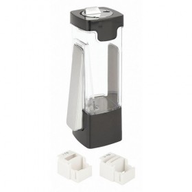 Sugar Dispenser Number of Compartments 1 Holds 6 oz. Countertop For Use With Sugar Package Quantity 1 Material Plastic Includes 1/4 Tspn 1/2 Tspn Tspn Measuring Stop Color Black/Chrome Size 6 oz.