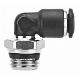 Elbow Connector Basic Material Plastic/Metal Combination Body Material Composite Connection Type Tube x Universal Thread Tube Size 4mm Pipe Size 1/8 In. Stem OD NA Max Pressure 250 psi Color Black Compliance ROHS EN331 REACH Gasket Material NBR70 Hex Size 33/64 In. Special Features Universal Thread System Compatible with Inch and Metric Threads Temp Range 0 Degrees to 160 Degrees F