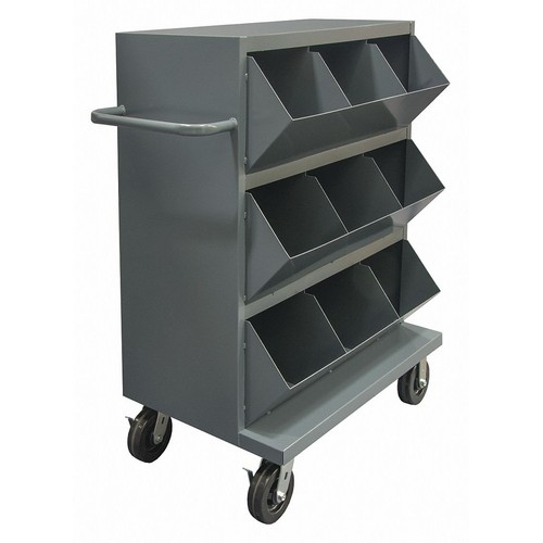 Mobile Storage Bin Overall Depth 24 In. Overall Width 36 In. Overall Height 49-1/4 In. Gauge 14 to 18 Load Capacity 2400 lb. Color Gray Finish Powder Coated Material Steel