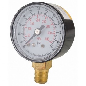 D1334 Pressure Gauge Test 1-1/2 In. Basic Gauge Case Material Plastic Basic Gauge Wetted Parts Brass / Bronze 1/8 In. MNPT Gauge Connection Location Bottom 0 to 60 psi Gauge Secondary Range Units kPa Gauge Secondary Range Values 0 to 400 +/-3-2-3 Percent Gauge Panel Mountable No Liquid Filled No Gauge Primary Range Smallest Graduation 1 Gauge Case Material ABS Plastic Gauge Case Color Black Calibration Certificate Included No