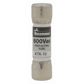 Fuse 10A 600VAC Not Rated Class Midget KTK Series Nonindicating Fast Acting Body Style Cylindrical Nonrejection Interrupt Rating 100kA at 600VAC Fuse Size 1-1/2 in L x 13/32 in dia. Length 1-1/2 In. Diameter 13/32 In. Equivalent Brand and Series Bussmann KTK Littelfuse KLK Mersen ATM Equivalent Series ATM KLK KTK Compatible Fuse Block Series BM BMM C2617 C5268 CHM HEB HET HEX HPG HPS OPM-1038 OPM-NG Body Material Melamine Single Element
