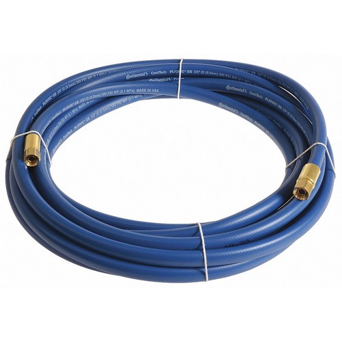 Air Hose Hose Inside Dia 1/2 In. Hose Outside Dia 3/4 In. Hose Length 75 ft. Hose Color Blue Hose Tube Material PVC Hose Cover Material PVC Burst Pressure 1200 psi Max Working Pressure @ 70 F 300 psi Temp Range -10 Degrees to 158 Degrees F Hose Reinforcement Type Spiral Hose Reinforcement Material Polyethylene Safety Factor 4 1 Hose Fitting A Material Brass Hose Fitting B Material Brass Hose Fitting A Type FNPT Hose Fitting B Type FNPT Hose Fitting A Size 1/2 In.