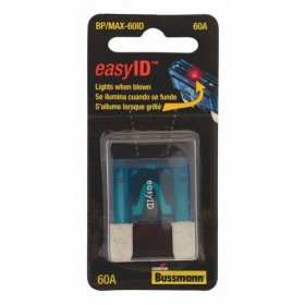Automotive Fuse 60A Indicating MAX-ID Series Not Rated 32VDC Fast Acting Body Material Plastic Nonrejection Body Style Blade Interrupt Rating 1kA at 32VDC Color Code Blue Fuse Size 3-3/4 in L x 1-3/4 in W x 3-3/4 in D Length 3-3/4 In. Width 1-3/4 In. Depth 3-3/4 In. Equivalent Brand and Series Bussmann MAX-ID Equivalent Series MAX-ID Single Element Standards RoHS 2002/95/EC