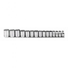 Socket Set Drive Size 1/2 In. SAE Socket Size Range 3/8 in to 1-1/4 In. Number of Pieces 15 Std. Socket Point Styles Included 12 Deep Socket Point Styles Included None Flex Socket Point Styles Included None Finish Chrome Standard Tool (Accessory Needed for Tethering) Ratchets Included None Sockets Included 3/8 In. 7/16 In. 1/2 In. 9/16 In. 5/8 In. 11/16 In. 3/4 In. 13/16 In. 7/8 In. 15/16 In. 1 In. 1-1/16 In. 1-1/8 In. 1-3/16 In. 1-1/4 In.