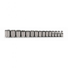Socket Set Drive Size 1/2 In. SAE Socket Size Range 3/8 in to 1-1/4 In. Number of Pieces 15 Std. Socket Point Styles Included 6 Deep Socket Point Styles Included None Flex Socket Point Styles Included None Finish Chrome Standard Tool (Accessory Needed for Tethering) Ratchets Included None Sockets Included 3/8 In. 7/16 In. 1/2 In. 9/16 In. 5/8 In. 11/16 In. 3/4 In. 13/16 In. 7/8 In. 15/16 In. 1 In. 1-1/16 In. 1-1/8 In. 1-3/16 In. 1-1/4 In. Standards ASME B107.1