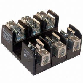 Fuse Block Fits Fuse Type Industrial Fuse UL Class R 0 to 30A Number of Poles 3 250VAC/DC For Fuse Size 2 in L x 9/16 in dia. Compatible Fuse Series A2D-R A2K-R FLNR FRN-R KLNR KTN-R KWN-R LLNRK LPN-RK TR-R Series 2HKRFB Nonindicating Rejection Fuse Block Design Open Wire Range 14 to 2 AWG Mounting Style Bolt-Down Body Material Glass Filled Polycarbonate Connector Type Box Lug Height 1.38 In. Width 3.00 In. Length 3.00 In. Spring Reinforced Clip Yes