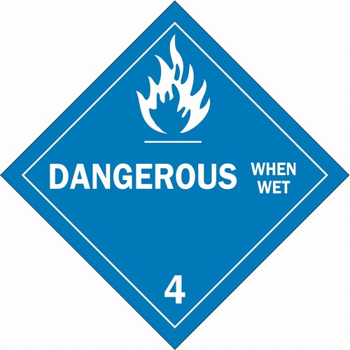 DOT Container Placard Language English Container Label/Placard Type Hazardous Class Hazard Class Class 4 (Flammable Solids) DOT/UN Product Form Placard Message Dangerous When Wet Label Width 10-3/4 In. Label Height 10-3/4 In. Material Polycoated Tagstock