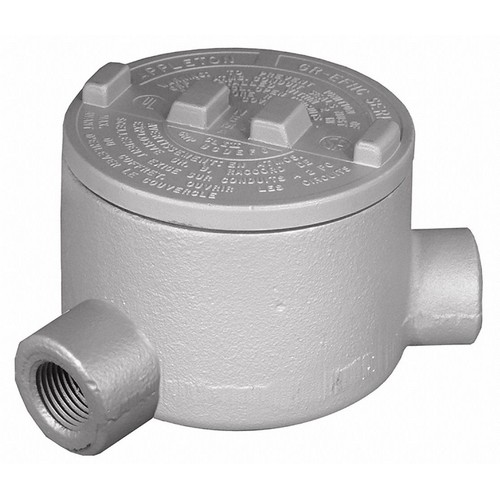 Conduit Outlet Body Hazardous Location Yes Conduit Outlet Body Material Copper Free Aluminum Conduit Outlet Body Style N Conduit Outlet Body Hub Size 3/4 In. Conduit Outlet Body Hub Style Threaded Conduit Outlet Body Capacity 3.0 cu in. Back Type Round Gray Standards UL 886 CSA C22.2 No 25 C22.2 No 30 UL Listed for Class I Division 1 and 2 Groups B C D Class II Division 1 and 2 Groups E F G and Class III Form 1