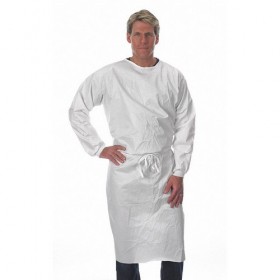 Disposable Sleeve Apron Tyvek(R) Apron Primary Material Microporous Film Laminate Resistant To Dry Particulates Light Liquid Splashes Length 45 In. Width 28-1/2 In. Standards ASTM Serged Seam Style 5.5 mil Thickness Size L Apron Waist Closure Type Ties Apron Neck Closure Type Adjustable Number of Pockets 0 Grommet Type None Series Micromax White