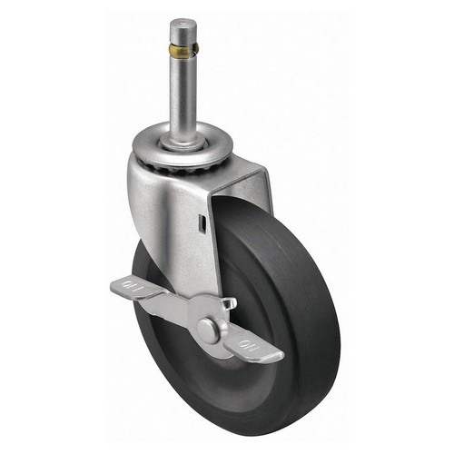 NSF-Listed Sanitary Plate Caster Swivel Caster with Brake 125 lb Load Rating 0 to 299 lb 4 in Wheel Dia 1 in Wheel Width Rubber Wheel/Tread Material 4 3/4 in Mounting Height Plain 7/16 in x 1 3/8 in Caster Stem Size Friction Ring Steel Caster Frame Material Zinc Frame Finish Yes Non-Marking 1 Number of Wheels