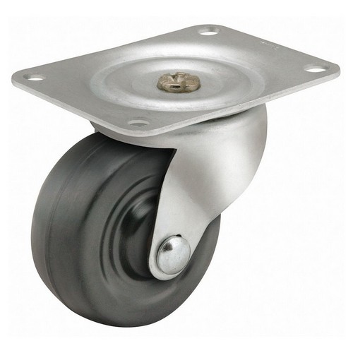 Swivel Economy NSF-Listed Sanitary Plate Caster Load Rating 150 lb Swivel Lock Type No Lock Included Wheel Dia 3 in Wheel Width 1 1/4 in Wheel/Tread Material Rubber Wheel Core Material Rubber Non-Marking Yes Number of Wheels 1 Caster Brake Type No Brake Included Tread Shape Standard