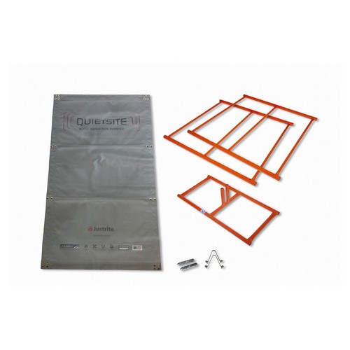 Noise Barrier Kit Width 48 in Length 97 1/2 in Thickness 1.5 in Color Gray Orange Material Polyester Steel Resistant To Fire Standards NFPA 701 Method 1 OSHA Compliance Includes (1) 4 ft x 8 ft Panel (1) Base (1) Metal Frame Kit