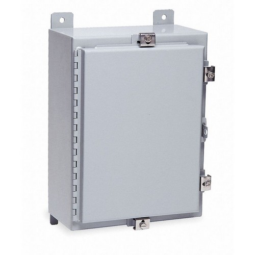 Enclosure NEMA Rating 12 13 4 Material of Enclosure Carbon Steel 16 in Hinged Enclosure Cover Type Solid / Clear Cover Solid Closure Method Padlockable Hasp Finish ANSI 61 Polyester Powder Color Gray Depth 6 in Enclosure Cover Features Hasp and Staple for Padlocking Seamless Polyurethane Poured in Place Gasket Height 16 in Includes Mounting Feet Interior Panel 31LA18 IP Rating 66 Metal Gauge 14 ga Wall Mounting Series N4 Standards cULus Usable Opening Depth 5.88 in