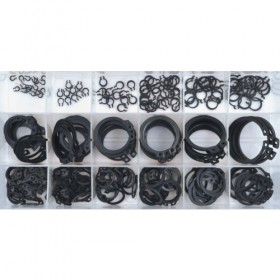 Supplied in a plastic case, this external circlip kit is an ideal way of ensuring you always have an ample amount of circlips to hand. Commonly used in spindles on motors, turbines and pistons and also known as retaining rings, snap rings or c-clips, this set comes with 300 circlips in 18 different sizes ranging from 3mm to 32mm in diameter, the kit contains circlips constructed from durable spring steel and a black oxide finish for extra strength.