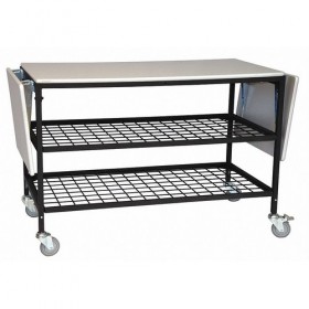 Adjustable Height Work Table Depth 26 In. Width 51 In. 300 lb Load Capacity Height 35 in to 40 In. Color Gray and Black Workbench/Table Leg Type Straight 4 in Caster Dia. Workbench/Table Frame Material Steel Caster Configuration (2) Swivel (2) Swivel with Brakes Includes Wire Grid Bottom Middle Shelves and Folding Leaves Finish Powder Coated Caster Material Polyurethane Workbench/Work Table Type Mobile No of Shelves 1