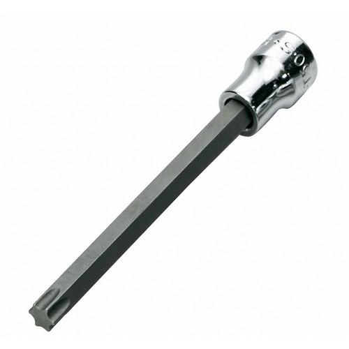 Socket Long Torx Drive Size 3/8 In. Size T45 Overall Length 4 In. Bit Length 5 In. Alloy Steel Construction Super Chrome Finish