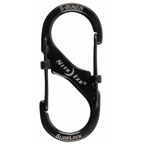 Locking Carabiner Clip Size 2 In. Material Stainless Steel For Use With Keys Small Items Includes (1) S-Biner with Locking Gates Black