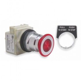 Illuminated Push Button Operator 30mm Momentary Push / Maintained Neutral / Momentary Pull Type of Operator 40mm Mushroom Head Head Material Plastic Lamp Module Voltage 120VAC Bezel Chrome Die Cast Aluminum Color Red Basic Material Metal Lamp Module Type Transformer Lamp Type LED Lamp Voltage 120VAC NEMA Rating 1 2 3 3R 4 6 12 13 IP Rating 66 Legend Pull To Start Push To Stop Legend/Background Color White/Black Standards UL Listed CSA Certified CE