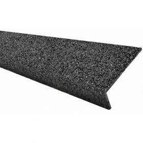 FRP Stair Nosing Black Fiberglass Installation Method Adhesive or Fasteners Depth 3 In. Width 48 In. Thickness 3/16 In. 1 in Lip Height Tread Pattern Heavy Duty Coarse Grit Coating Standards ASTM ADA BSS