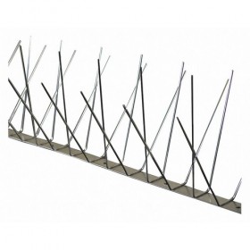 Bird Repellent Spikes Used For Bird Control Weight 11.05 lb. Form Spikes Overall Length 51 ft. Overall Width 8 In. Overall Height 4-1/4 In. Silver Coverage 51 ft. Material Stainless Steel For Use On Ledges Parapets Signs Beams Pipes Chimneys Cutouts Security Cameras Lights Application Method Glued or Screwed to Any Surface
