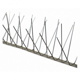 Bird Repellent Spikes Used For Bird Control Weight 22.10 lb. Form Spikes Overall Length 102 ft. Overall Width 8 In. Overall Height 4-1/4 In. Silver Coverage 102 ft. Material Stainless Steel For Use On Ledges Parapets Signs Beams Pipes Chimneys Cutouts Security Cameras Lights Application Method Glued or Screwed to Any Surface