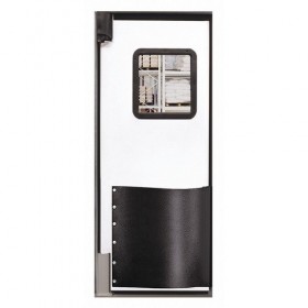H1815 Swinging Door Door Height 7 ft. Door Width 3 ft. Door Color White Swinging Door Material Polyethylene Textured (Polyethylene Eggshell) Finish Door Thickness 1-1/2 In. Number of Doors 1 Window Height 16 In. Window Width 16 In. Bumpers Included Yes Door Seals Included Yes Opening Height 7 ft. Opening Width 3 ft. Window Color Clear Window Material Polycarbonate Left and Right Jamb Insulation Value 9.86 Standards NSF and USDA Swinging Door Core Material Non-CFC Urethane Core