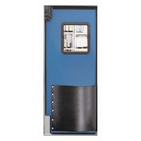 H1814 Swinging Door Door Height 7 ft. Door Width 2 ft 6 In. Door Color Royal Blue Swinging Door Material Polyethylene Textured (Polyethylene Eggshell) Finish Door Thickness 1-1/2 In. Number of Doors 1 Window Height 18 In. Window Width 12 In. Bumpers Included Yes Door Seals Included Yes Opening Height 7 ft. Opening Width 2 ft 6 In. Window Color Clear Window Material Polycarbonate Left and Right Jamb Insulation Value 9.86 Standards NSF and USDA