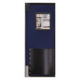 H1814 Swinging Door Door Height 7 ft. Door Width 2 ft 6 In. Door Color Navy Blue Swinging Door Material Polyethylene Textured (Polyethylene Eggshell) Finish Door Thickness 1-1/2 In. Number of Doors 1 Window Height 18 In. Window Width 12 In. Bumpers Included Yes Door Seals Included Yes Opening Height 7 ft. Opening Width 2 ft 6 In. Window Color Clear Window Material Polycarbonate Left and Right Jamb Insulation Value 9.86 Standards NSF and USDA