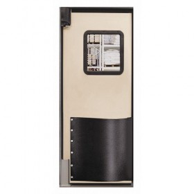 H1815 Swinging Door Door Height 7 ft. Door Width 3 ft. Door Color Beige Swinging Door Material Polyethylene Textured (Polyethylene Eggshell) Finish Door Thickness 1-1/2 In. Number of Doors 1 Window Height 16 In. Window Width 16 In. Bumpers Included Yes Door Seals Included Yes Opening Height 7 ft. Opening Width 3 ft. Window Color Clear Window Material Polycarbonate Left and Right Jamb Insulation Value 9.86 Standards NSF and USDA Swinging Door Core Material Non-CFC Urethane Core